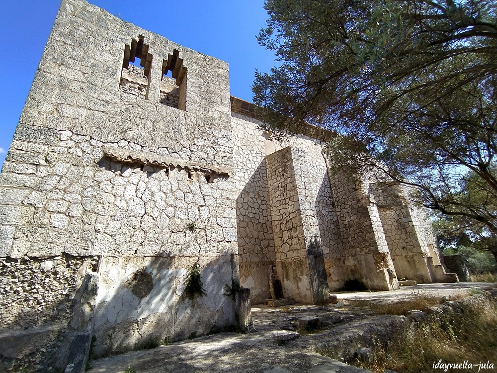 Najpierw odpoczęłyśmy trochę w miejscu punktu widokowego, a potem poszłyśmy eksplorować ruiny. Jak się okazało, nie byłyśmy jedyne i przed nami dotarła tam grupa młodzieży. Ponieważ nagrywali jakiś film, nie chciałyśmy im wchodzić w kadr i po szybkich oględzinach, wyszłyśmy. Tak naprawdę nie ma tam wiele do oglądania. Najfajniejsze zdjęcia to fasada ze zniszczoną wieżą. Natomiast samo wnętrze to trochę gruzu, trawa i chwasty. Ale co ciekawe, kościółek został wzniesiony na pozostałościach murów jednej z pierwszych osad na Majorce.